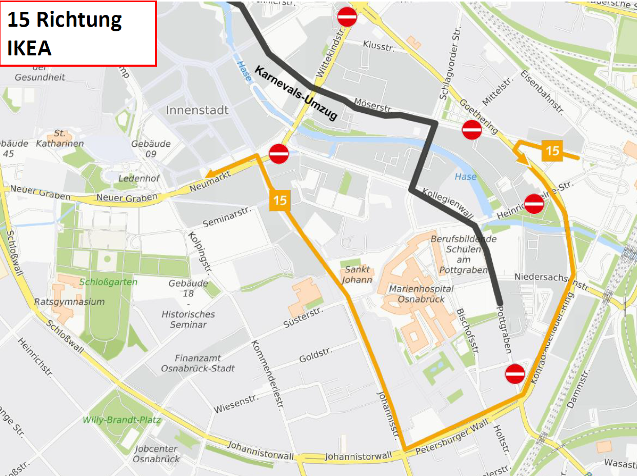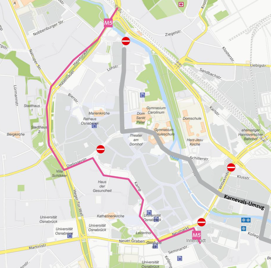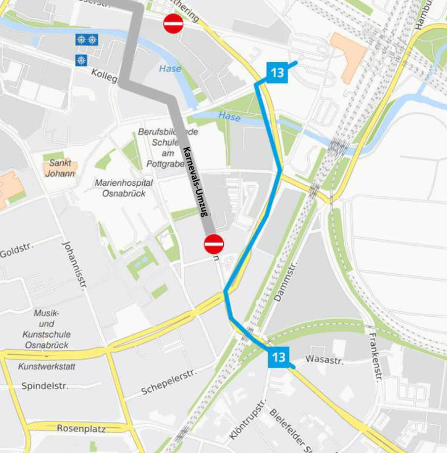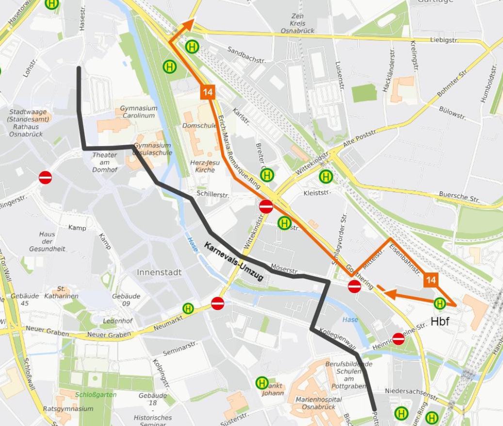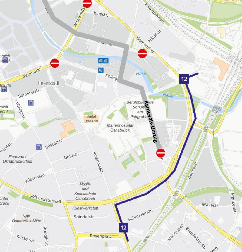 Die Linien werden aufgrund des Kanervalsumzuges wie folgt umgeleitet: