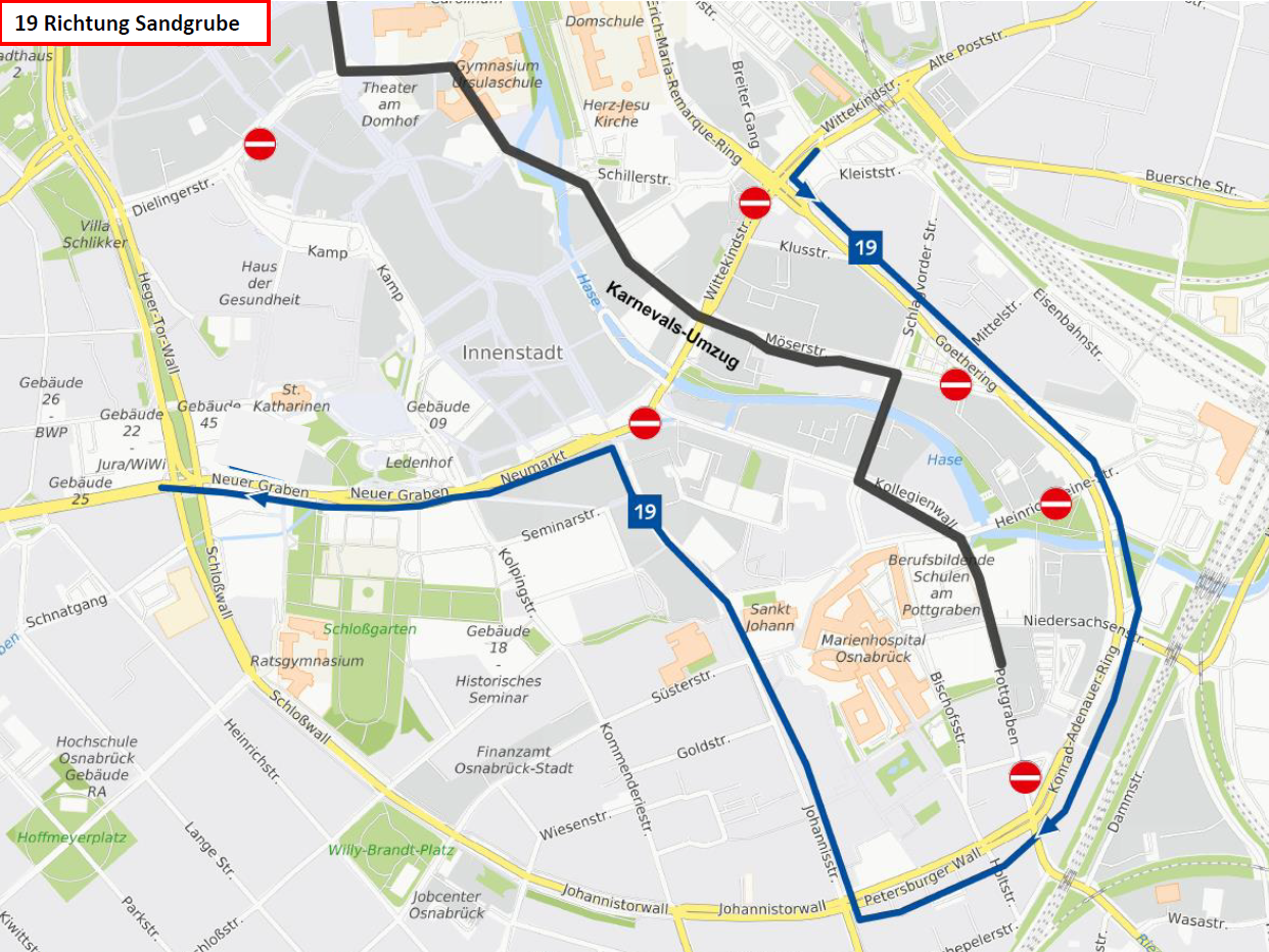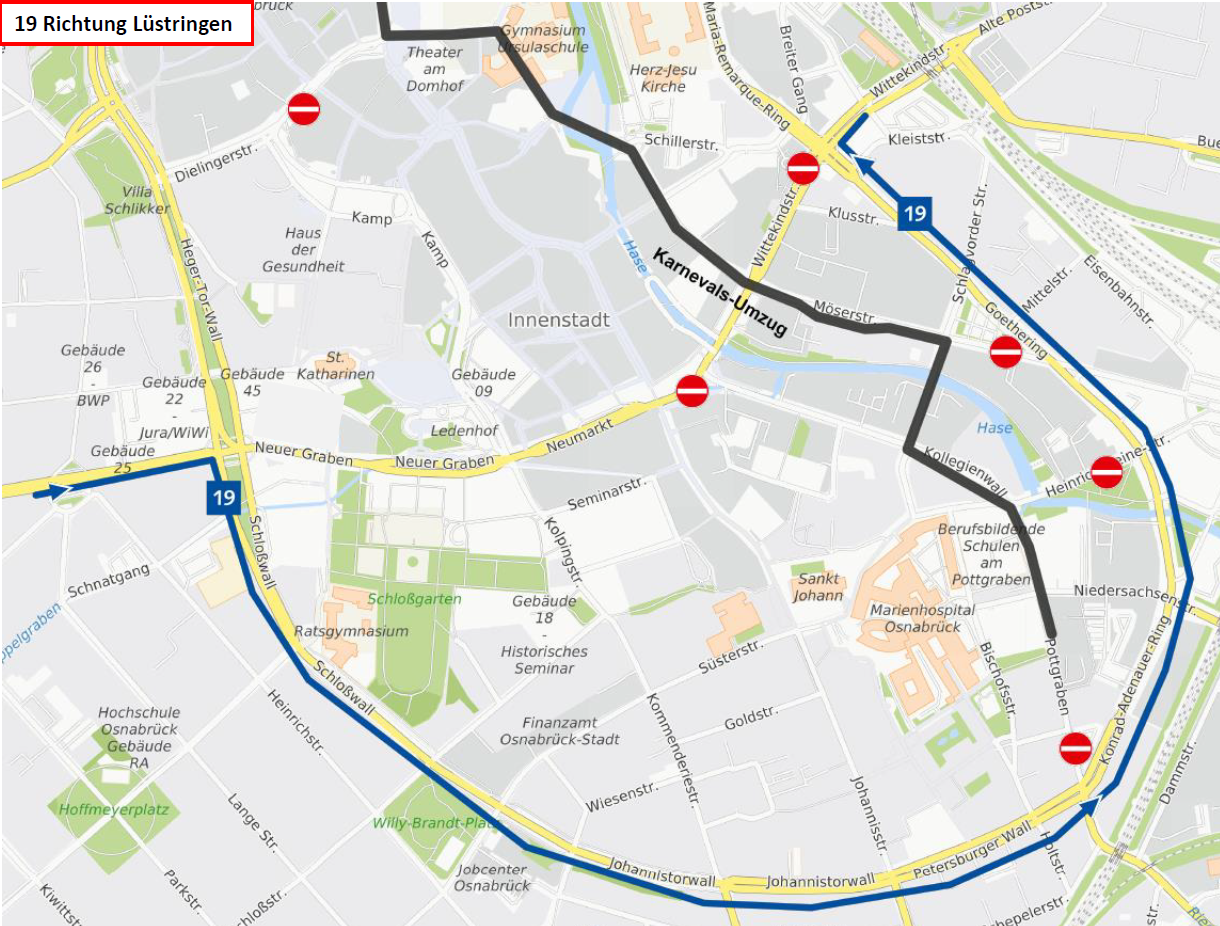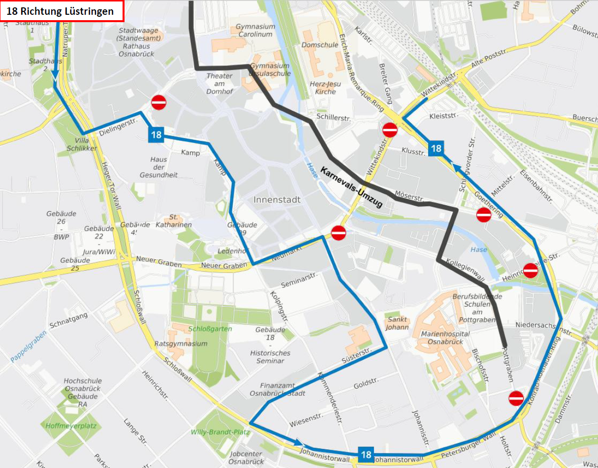 Die Linien werden aufgrund des Kanervalsumzuges wie folgt umgeleitet: