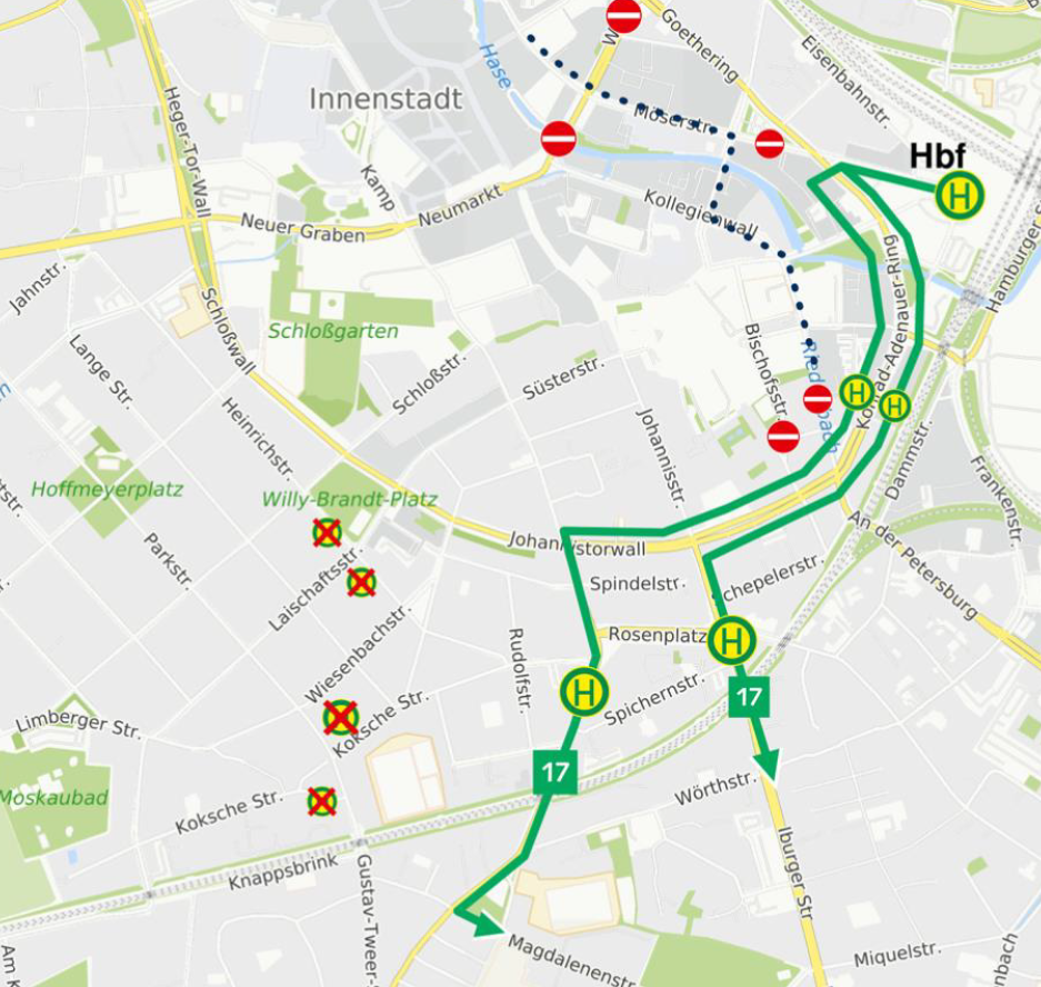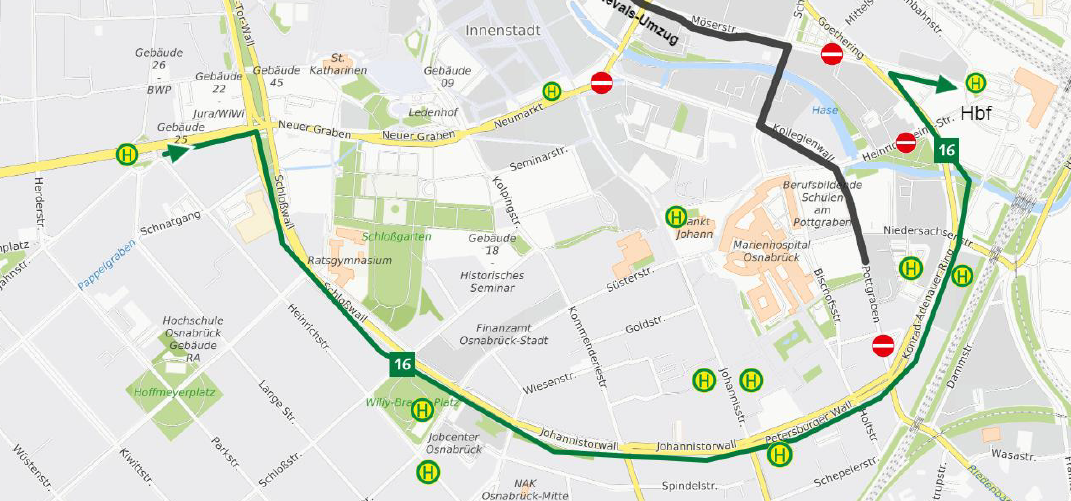 An Feiertagen und zu besonderen Anlässen gelten im Gebiet der Verkehrsgemeinschaft Osnabrück (VOS) oft angepasste Fahrpläne oder Umleitungen. Auf dieser Seite informieren wir Sie über abweichende Fahrzeiten, Sonderverkehre und Umleitungen, damit Sie Ihre Fahrt rechtzeitig planen können.